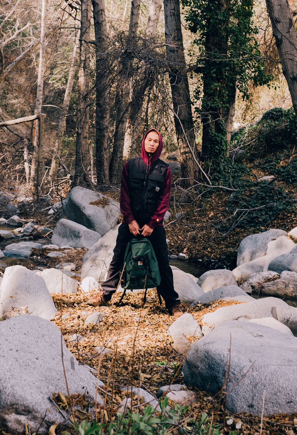 칼하트 WIP 봄 컬렉션 THE GREAT INDOORS는 모든 상황이 잠잠해 졌을때 우리를 기다리고 있는 자연의 아름다움을 비춰 이번 에디토리얼을 풀어냄으로써, 한시적으로 갇혀 있는 지금 상황에 대해 미래의 긍정적인 모습을 담았다.