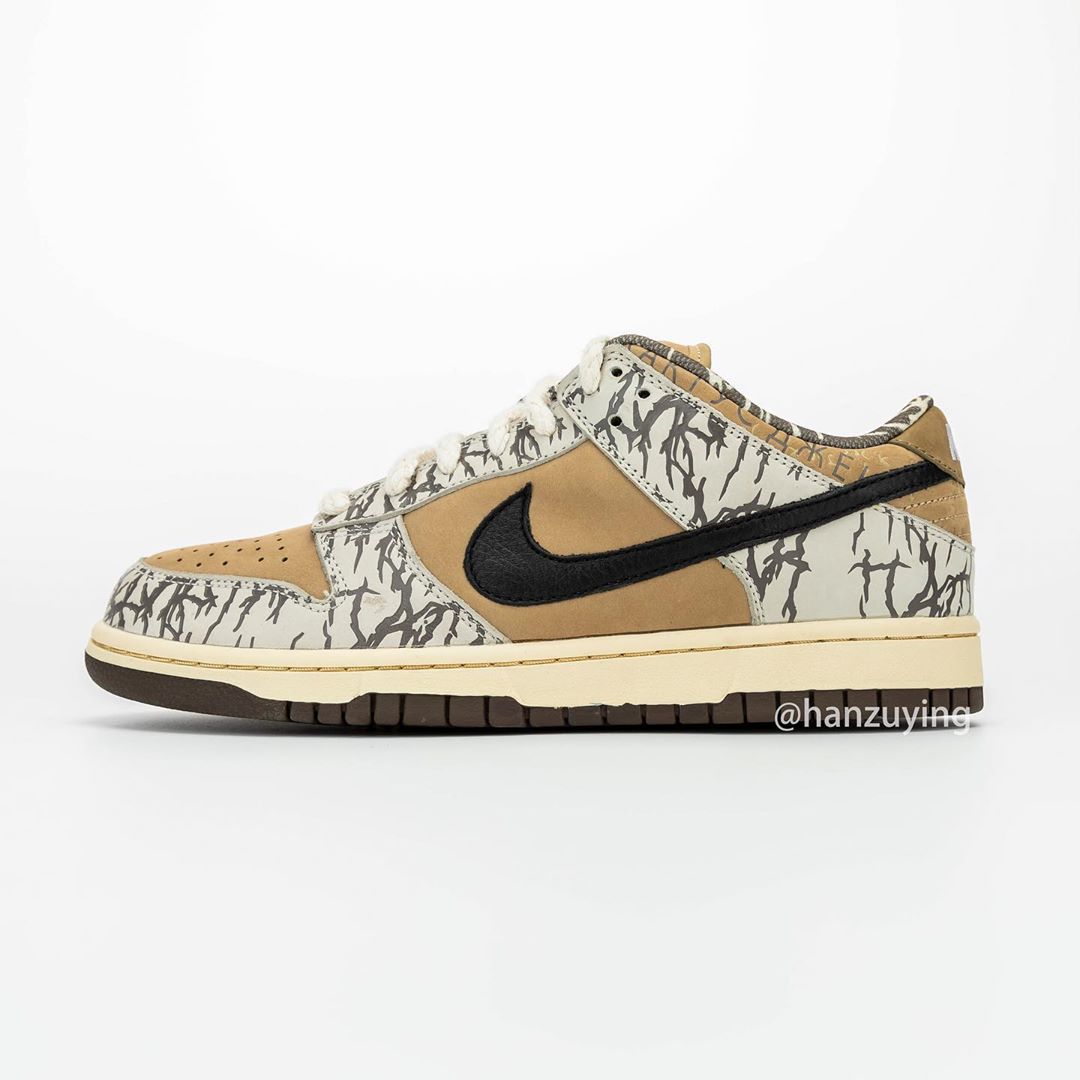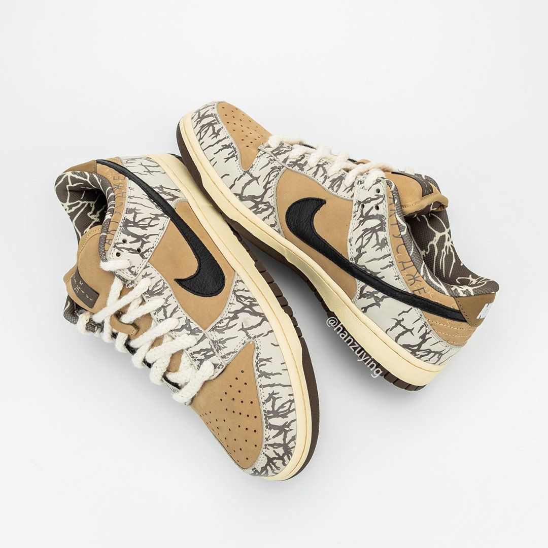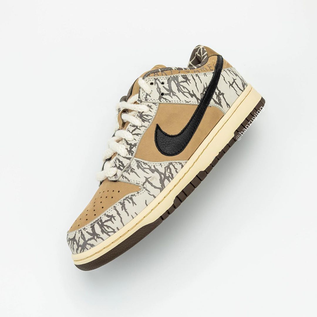 기존 트래비스 스캇 x 나이키 반다나 sb 덩크로우에 이어, 번개무늬 패턴이 새겨진 베이지 컬러의 덩크 sb가 출시된다. 스니커즈 전문 채널인 @hanzuying이 공개한 사진 속 sb 덩크는 베이지 컬러를 베이스로 블랙 스우시가 돋보인다.