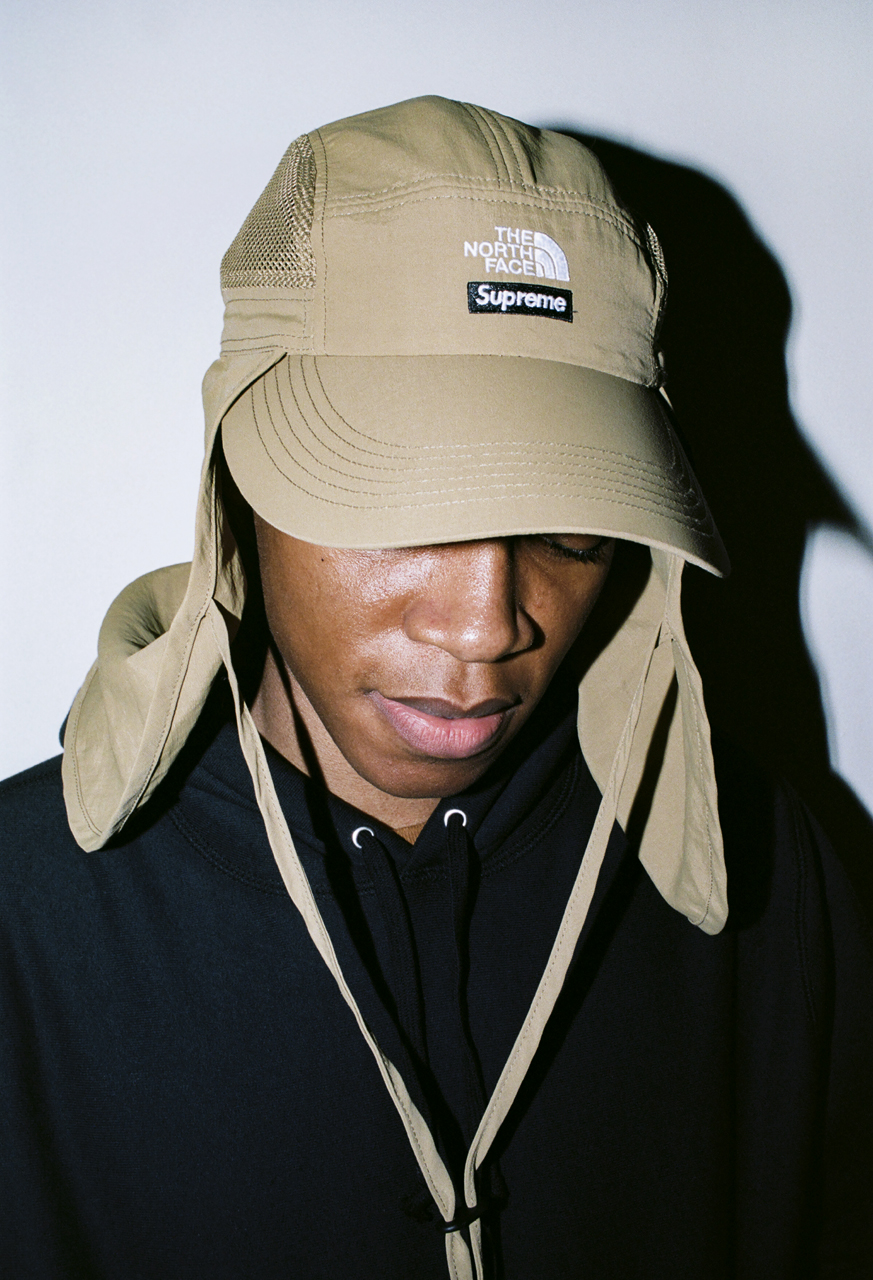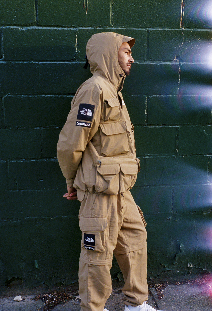 이번 컬렉션에서 슈프림과 노스페이스는 카고 재킷, 벨티드 카고 팬츠, 카고 베스트와 캠프 캡, 티셔츠 등을 발매한다. 카고 재킷과 베스트 팬츠는 내수성이 있는 나일론을 소재로 제작되었으며, 통기성이 좋은 메쉬가 쓰였다.