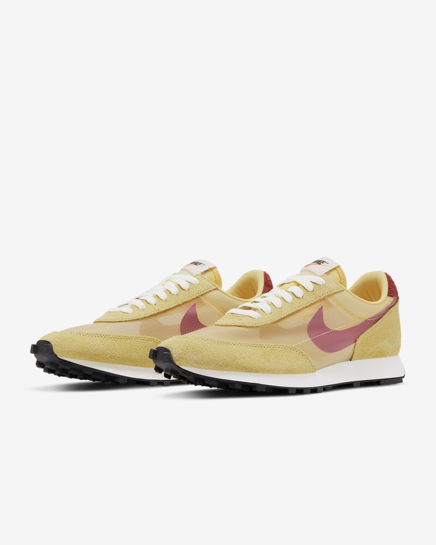 최근 나이키에서 가장 핫한 신발 '데이브레이크(DAY BRAKE)'. 데이브레이크는 2019년 발매 40주년을 기념하여 레트로 되었던 상품으로 기존 컬러에서 최근 추가된 '데이브레이크 타입'으로 다시 한 번 주목됐다. 그리고 얼마 지나지 않은 현시점 2020 S/S 시즌 '데이브레이크 SP 틸 틴트' 컬러를 또 다시 선보였다. 시스루한 비쥬얼로 보는이로 하여금 시원한 느낌을 가져다준다. 데이브레이크 타입 또한 시스루한 느낌으로 양말까지 신경써야겠다는 반응으로 웃음을 자아냈는데 틸 틴트 컬러의 어퍼 또한 반투명 트랜스루센트 우븐 소재와 스웨이드로 비슷한 분위기를 연출했다.